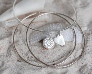 Silverarmbanden kan anpassas med olika ytstrukturer och behandlingar. Välj mellan en klassisk blankpolerad finish, borstad eller hamrad yta som ger en lite glimrande effekt. Både silverarmband och armbandshängen kan beställas med mönstrad yta för ytterligare karaktär. Ytan påverkar både uttrycket och känslan i ditt smycke – valet är ditt.